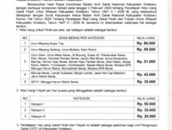 GENERASINEWSINDONESIA.COM Kotabaru – Badan Amil Zakat Nasional (BAZNAS) Kabupaten Kotabaru menetapkan nilai uang zakat fitrah dan fidyah untuk Tahun 1447 Hijriah / 2026 Masehi. Penetapan tersebut merupakan hasil rapat koordinasi bersama unsur terkait pada Rabu (5/2). Dimana, hasil rapat kemudian dituangkan dalam keputusan tentang Penetapan Nilai Uang Zakat Fitrah dan Fidyah sebagai pedoman pelaksanaan zakat di bulan Ramadan.