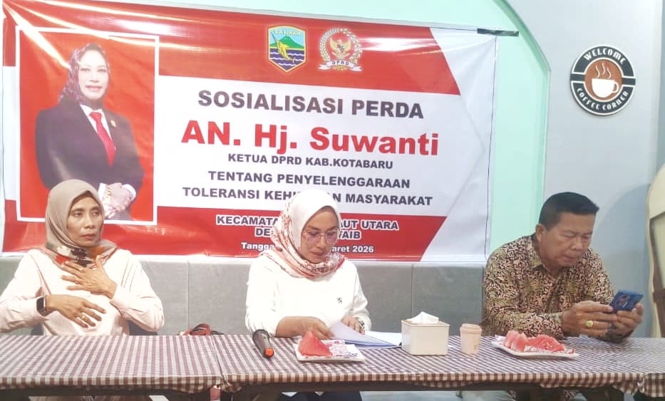 GENERASINEWSINDONESIA.COM Kotabaru – Ketua Dewan Perwakilan Rakyat Daerah (DPRD) Kabupaten Kotabaru, Hj. Suwanti, pada Minggu (29/03) menggelar sosialisasi Peraturan Daerah (Perda) tentang Penyelenggaraan Toleransi dalam Kehidupan Bermasyarakat di Desa Sungai Taib, Kecamatan Pulaulaut Utara, Kabupaten Kotabaru.